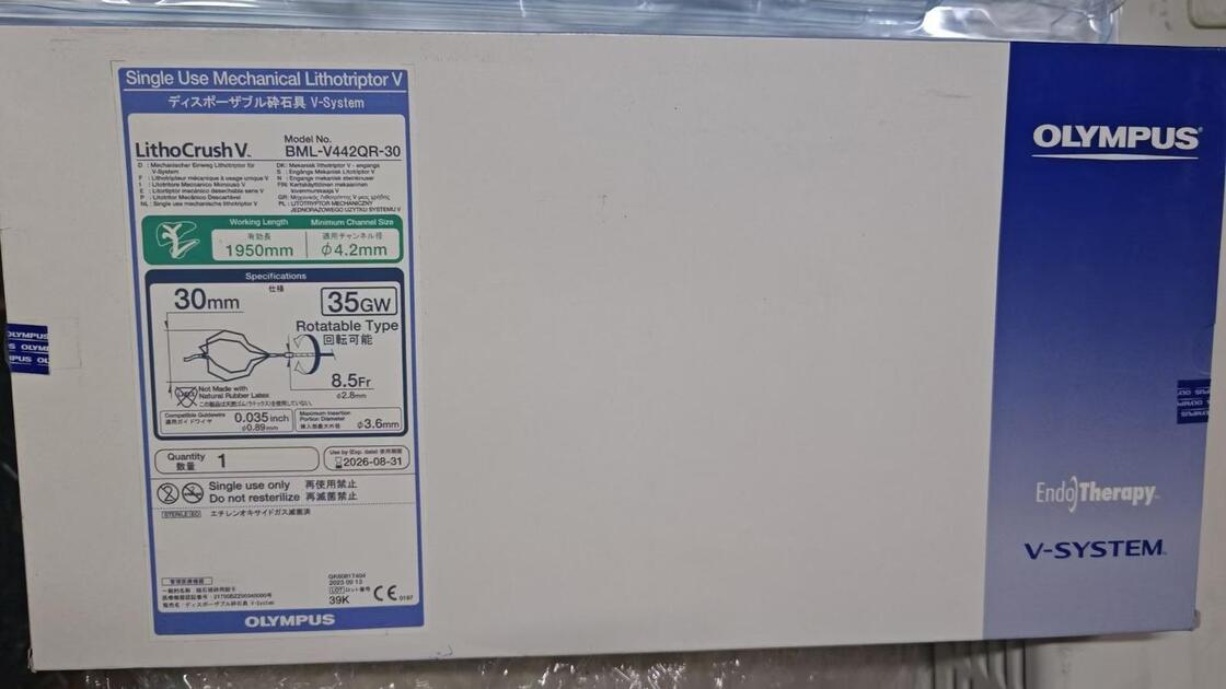 Olympus BML‐V442QR‐30 V‐System Single‐Use Mechanical Lithotriptor è un dispositivo medico utilizzato in procedure endoscopiche per schiacciare meccanicamente i calcoli, in particolare nel tratto biliare,durante interventi chirurgici minimamente invasiviÈ progettato per essere usato una volta e poi smaltito, piuttosto che riutilizzato.